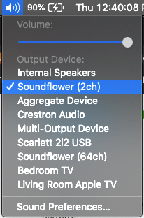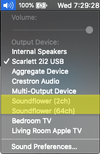 Soundflower is a system audio extension that allows audio to be routed internally from one to another. The installation process is pretty straightforward. But this won’t install an app on your computer. Instead, after installation, you’ll see two new sound options in the sound menu.